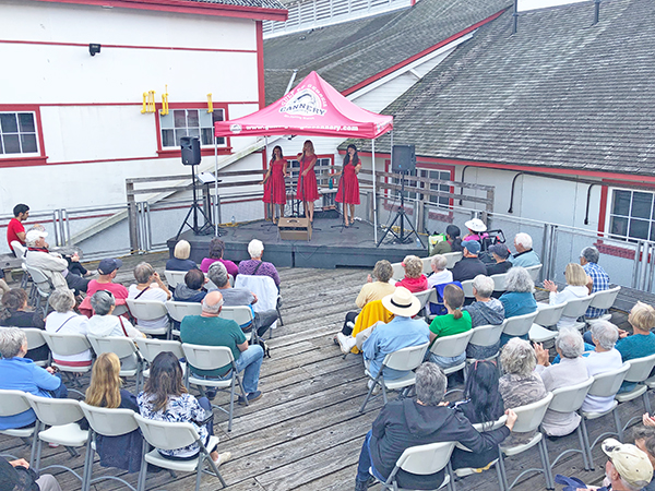 The Cannery’s outdoor “Tank Deck” welcomed the Beauty Shop Dolls last Friday for a sentimental singing trip through the years. Dressed in matching red dresses and elegant red lipstick, the vintage vocal trio were the perfect compliment to our red and white cannery building. Aside from their stylish look, these ladies use tight harmonies and classic dance choreography to transform the stage into a retro-performance reminiscent of groups like The Chordettes and The Andrew Sisters. The Dolls dazzled us past the decades, and left us wanting more as their set closed.